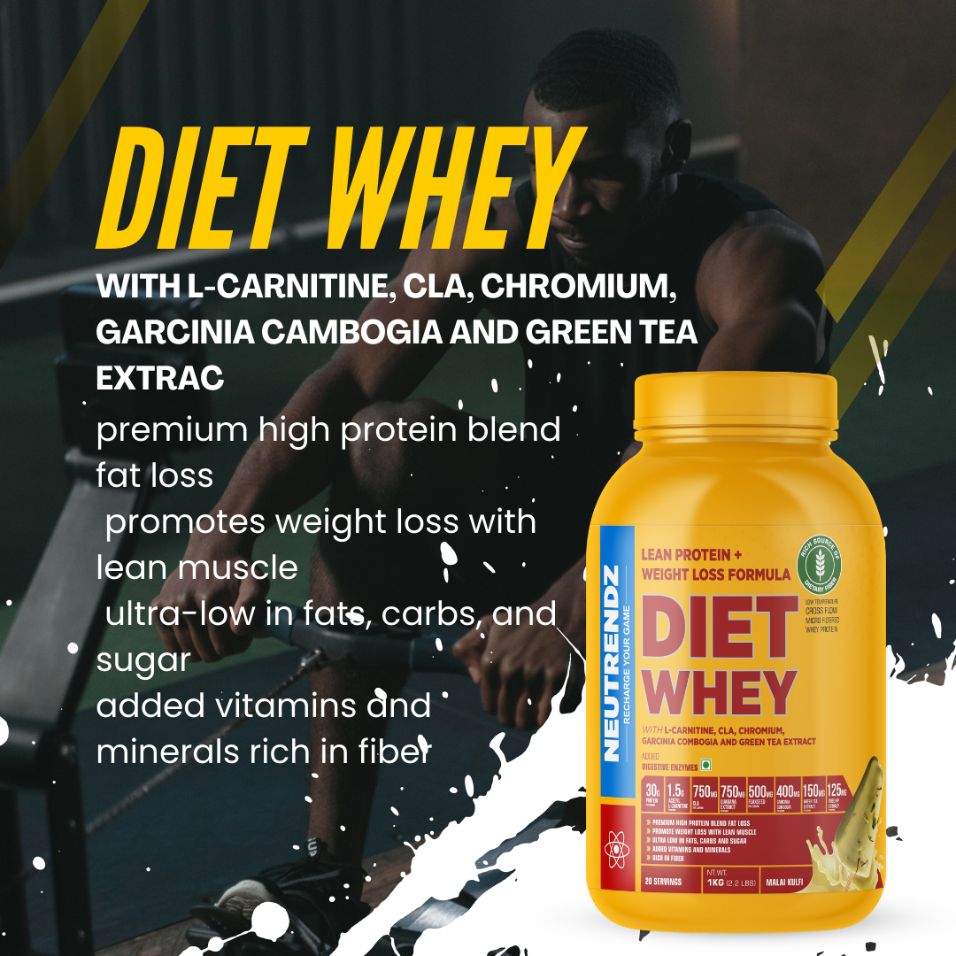 - NEUTRENDZ DIET WHEY is a lean protein and weight loss formula designed to help support healthy body composition. Here’s a breakdown of its ingredients: