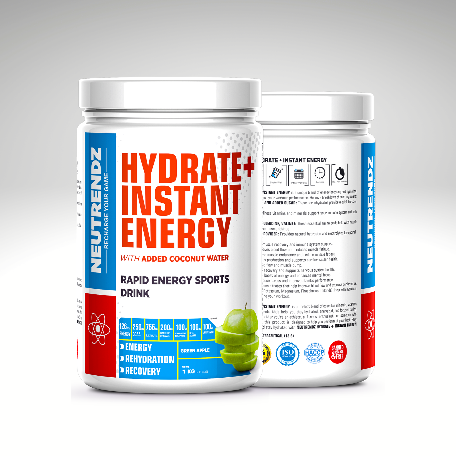 NEUTRENDZ HYDRATE + INSTANT ENERGY is a unique blend of energy-boosting and hydrating ingredients designed to enhance your workout performance. Here’s a breakdown of each ingredient: