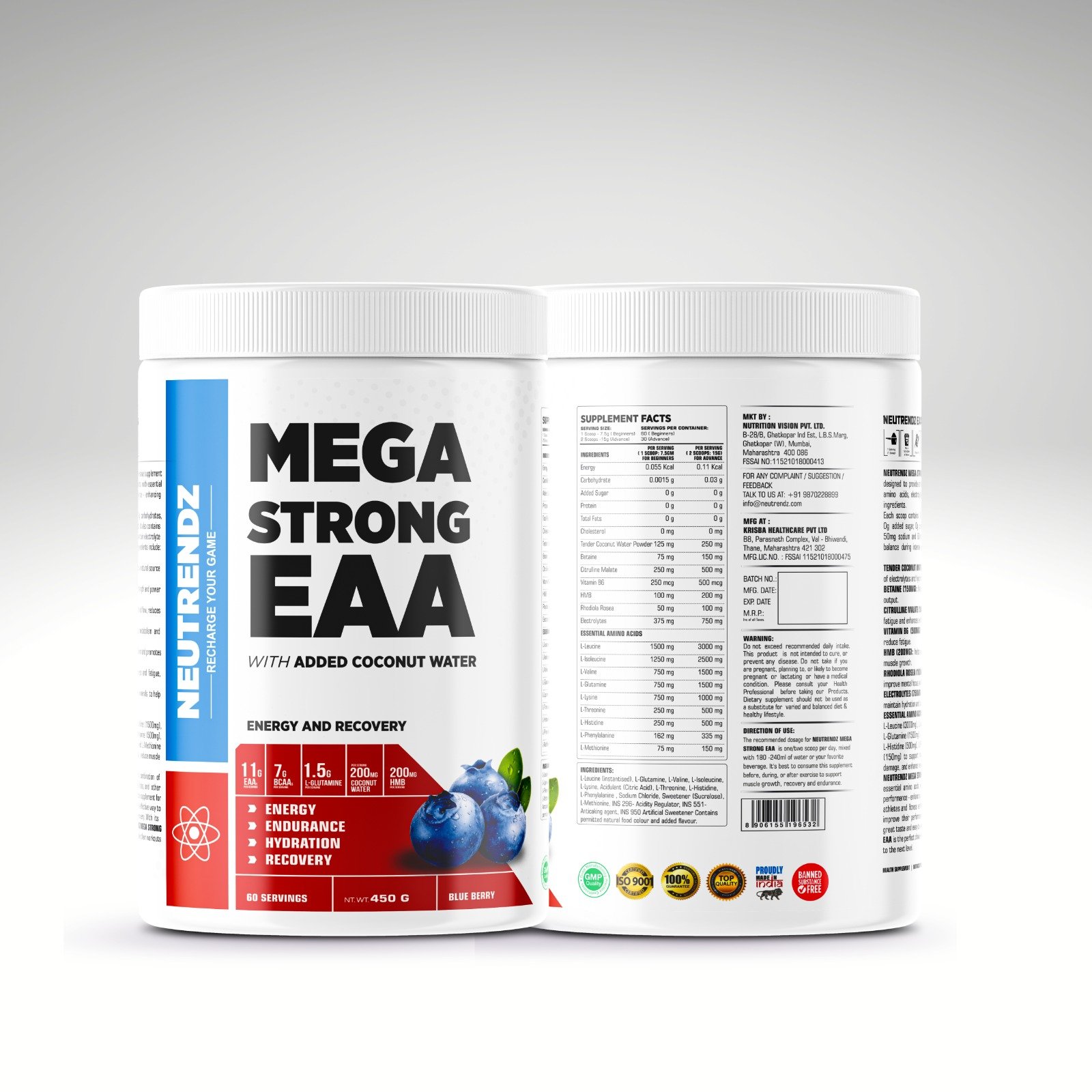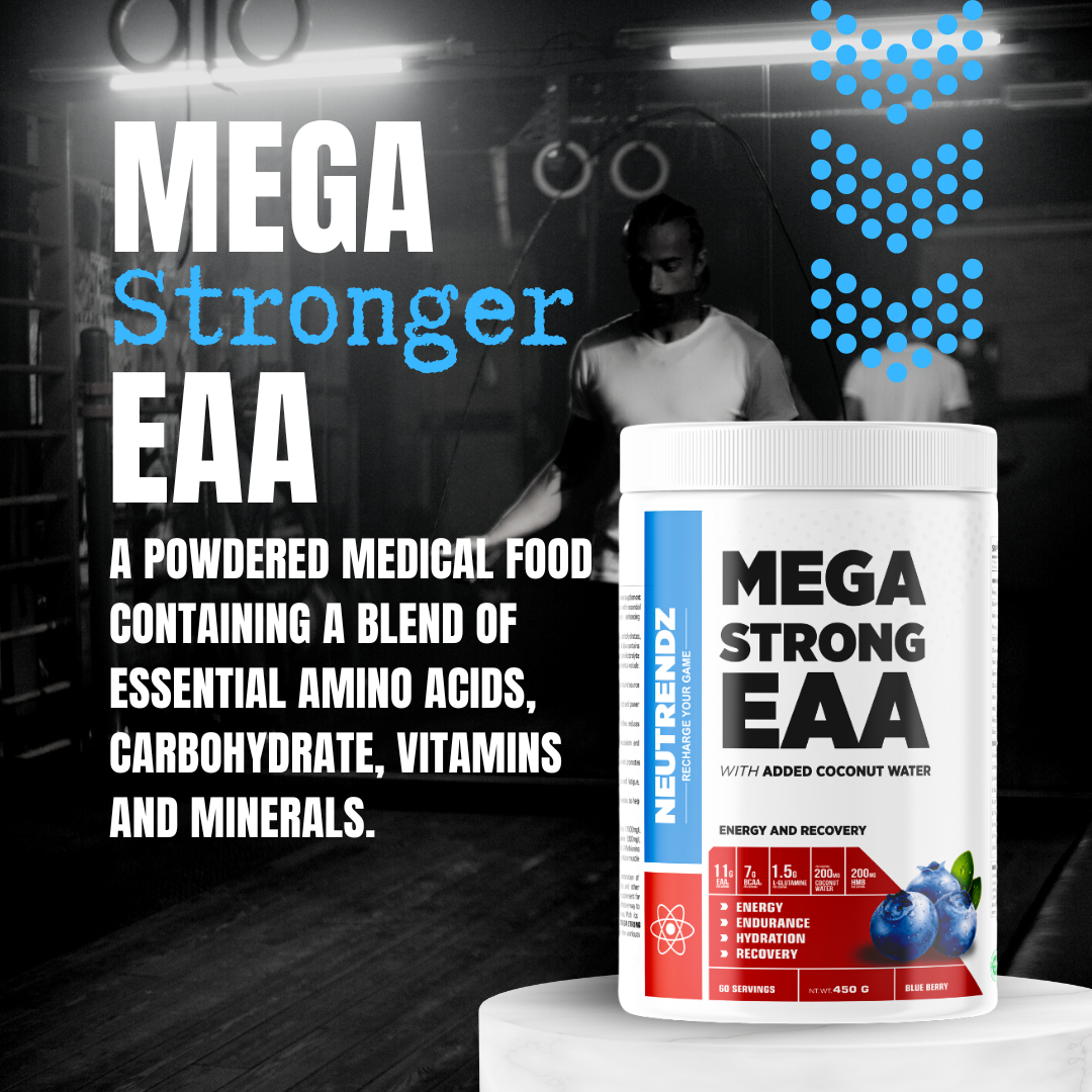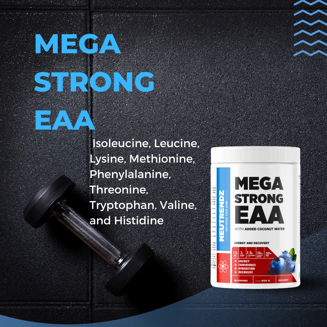 NEUTRENDZ MEGA STRONG EAA is a comprehensive supplement designed to provide athletes and fitness enthusiasts with essential amino acids, electrolytes, and other performance-enhancing ingredients.