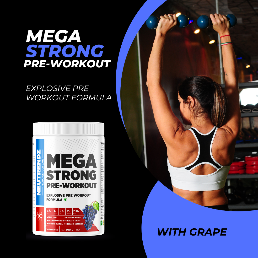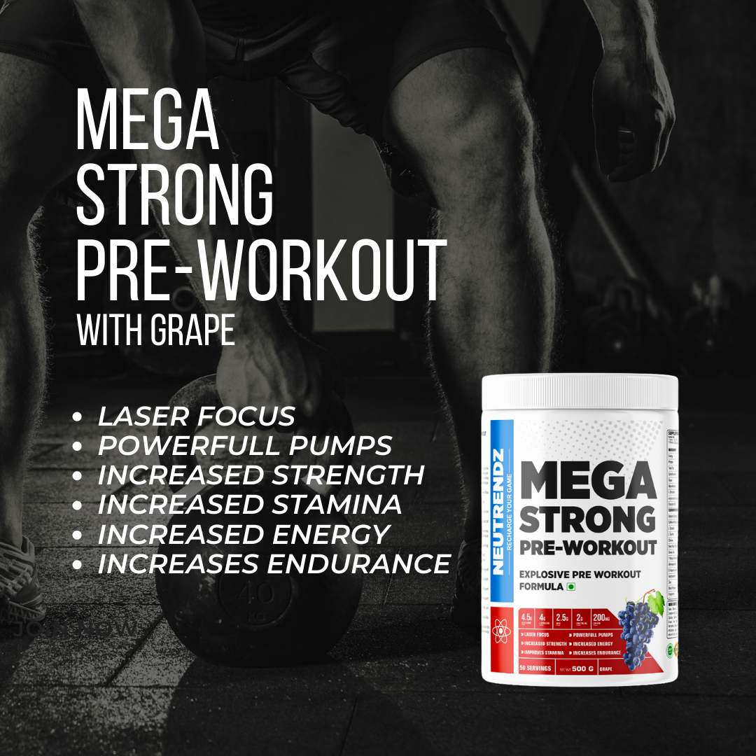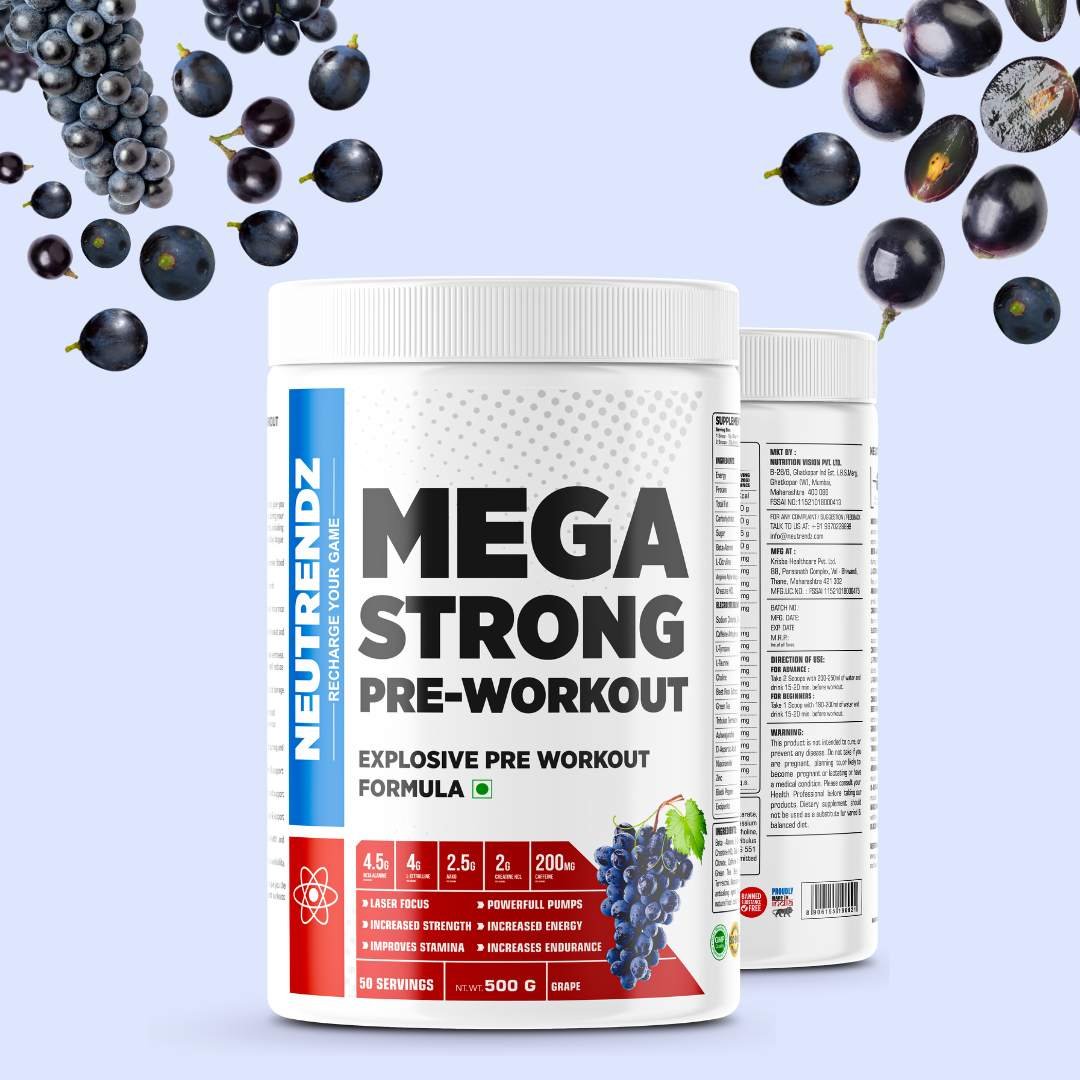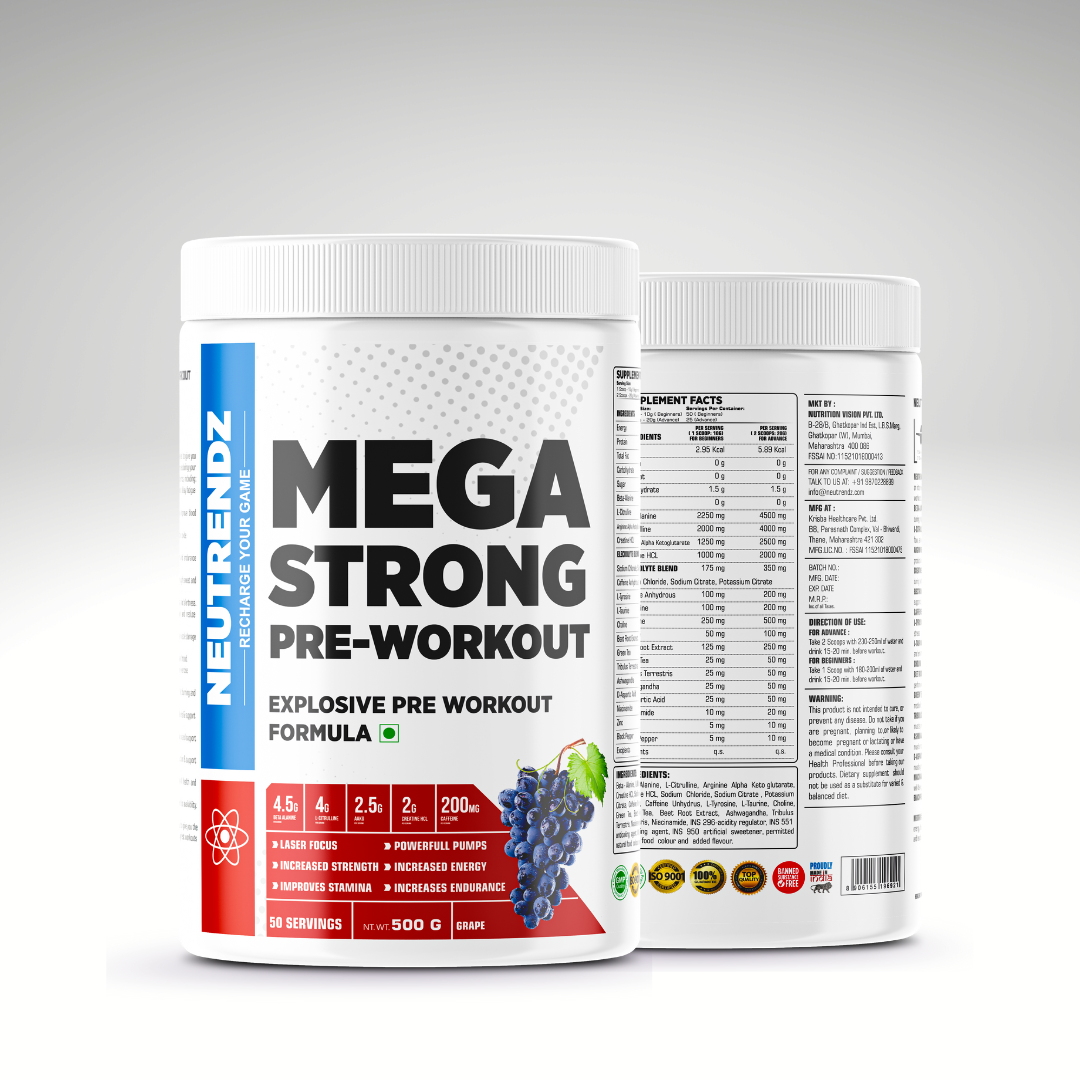 NEUTRENDZ MEGA STRONG PRE WORKOUT is specially formulated to give you an intense energy boost, enhanced focus, and increased endurance during your workouts. Each 20g scoop contains a powerful blend of ingredients, including: