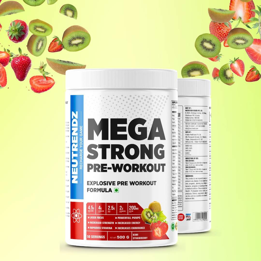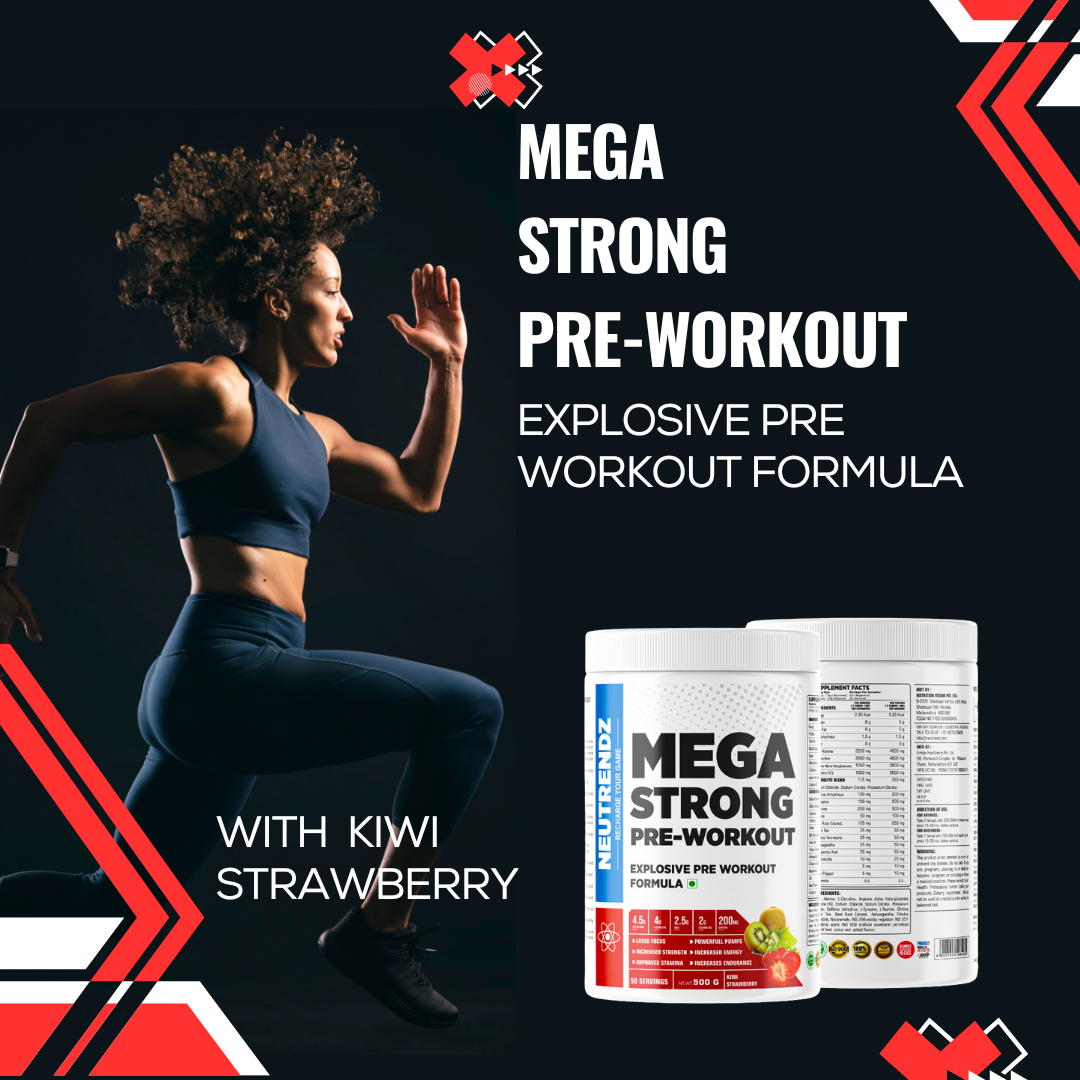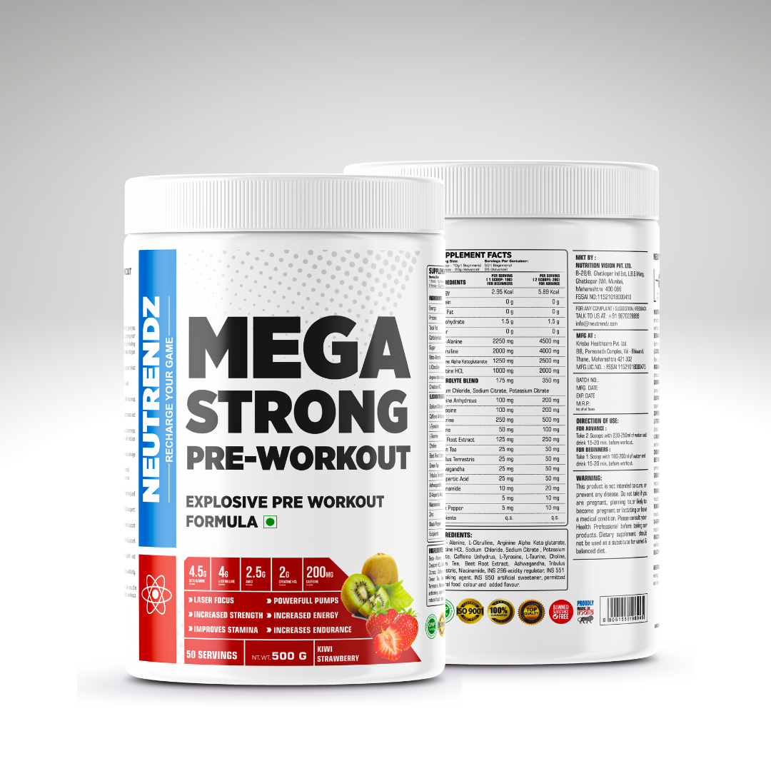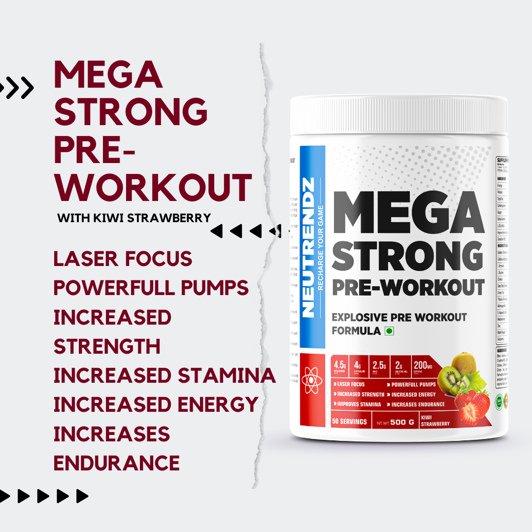 NEUTRENDZ MEGA STRONG PRE WORKOUT is specially formulated to give you an intense energy boost, enhanced focus, and increased endurance during your workouts. Each 20g scoop contains a powerful blend of ingredients, including: