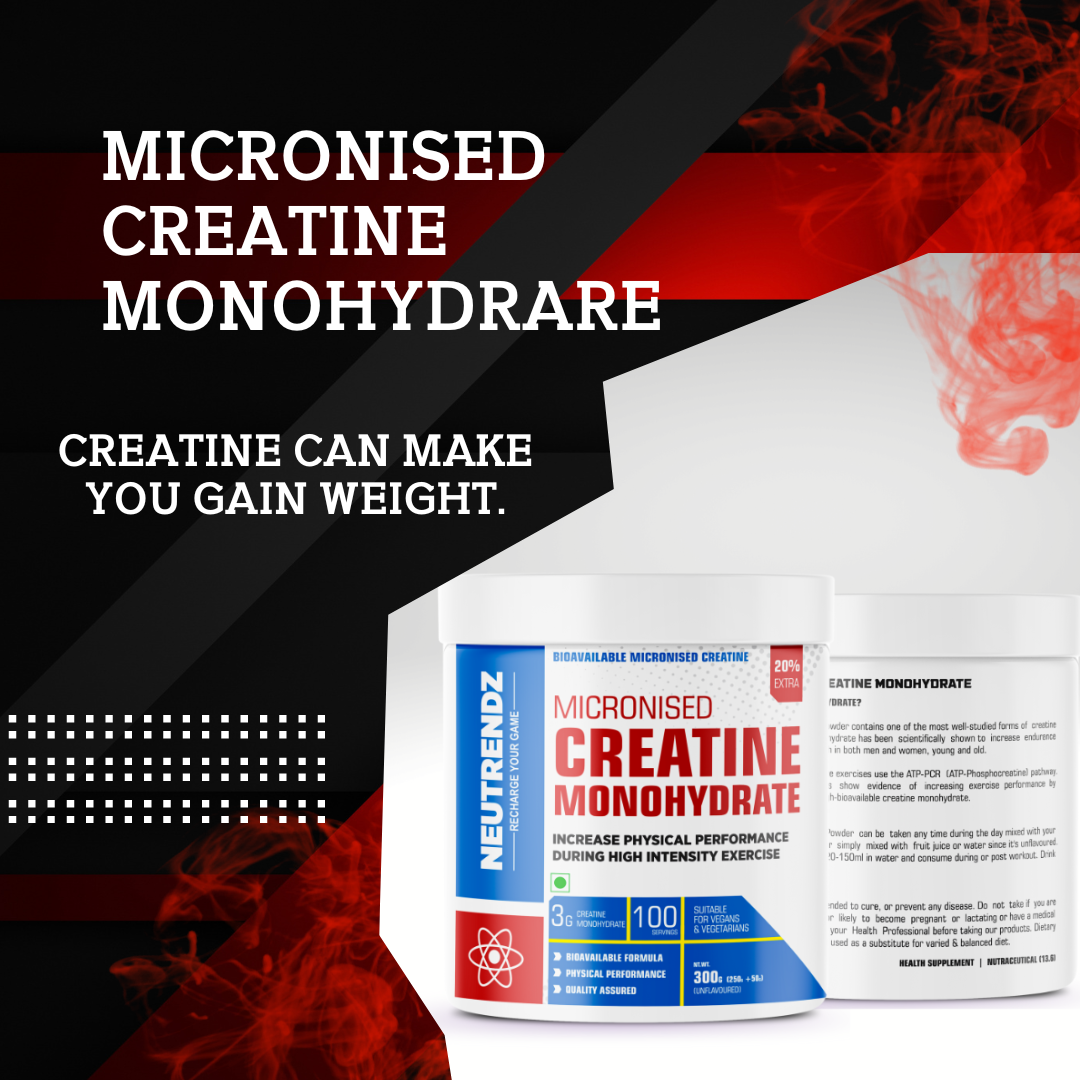 - LEAN MUSCLE GAIN: Micronised creatine monohydrate 300g Unflavoured Supplement helps in muscle volumization, & improves lean muscle mass & actual gains in size & strength making it a favorite of athletes, bodybuilders, power-lifters, and cross fitters