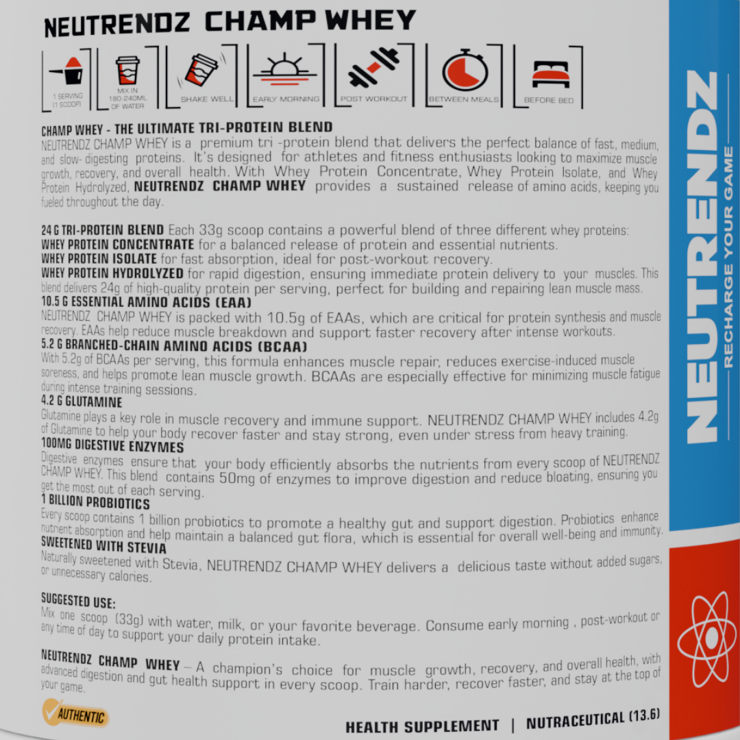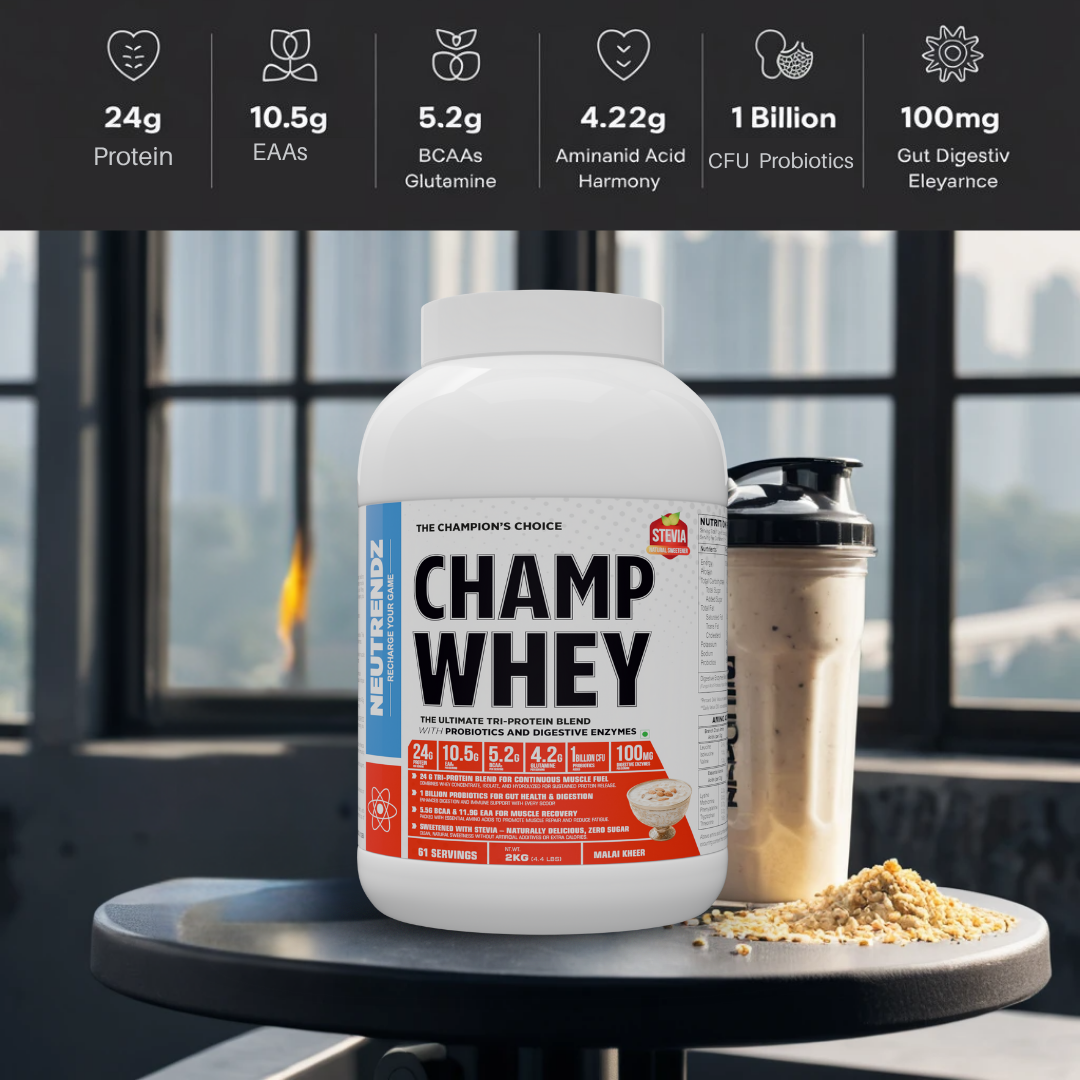 NEUTRENDZ CHAMP WHEY – PREMIUM TRI-PROTEIN BLEND MALAI KHEER 2KG