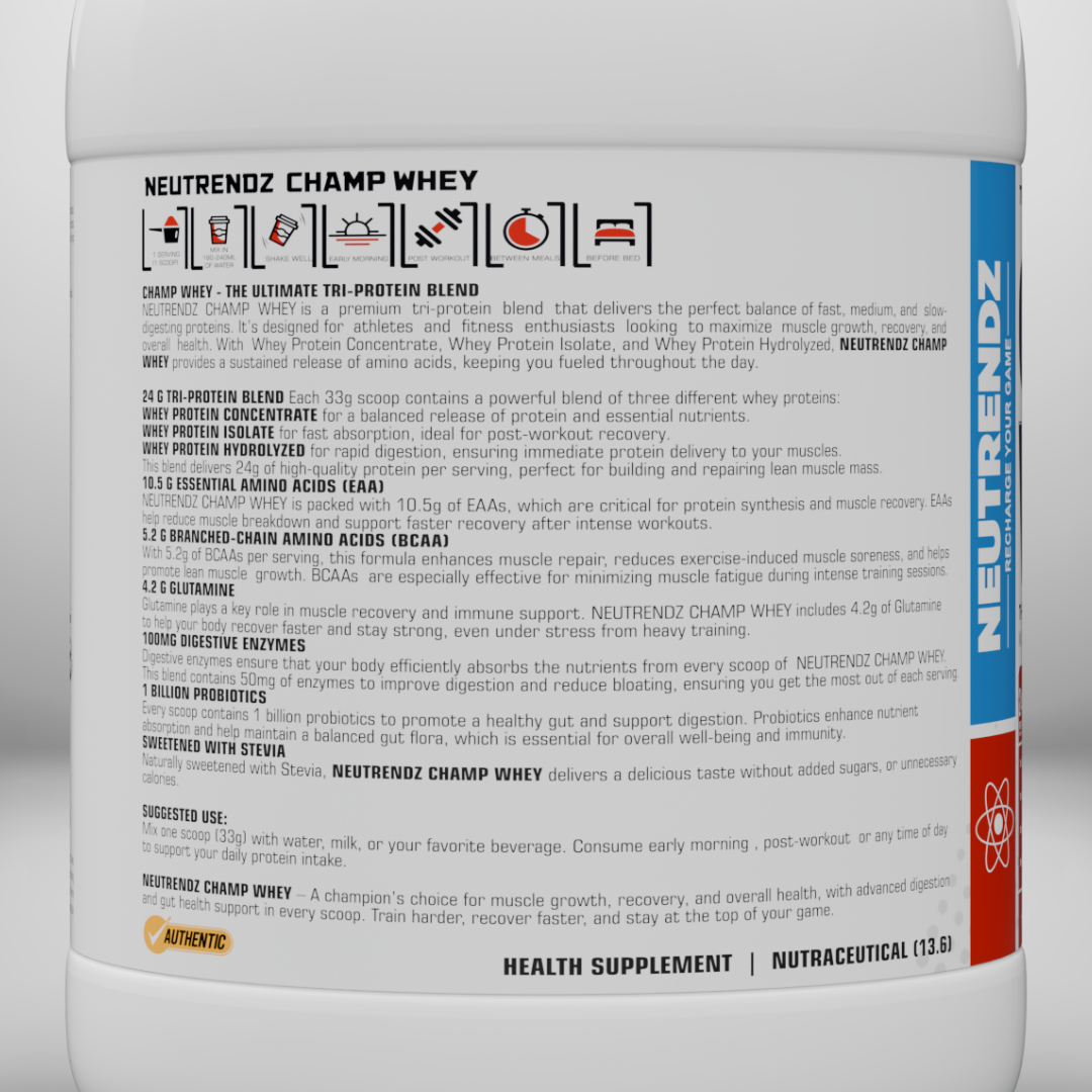 NEUTRENDZ CHAMP WHEY – PREMIUM TRI-PROTEIN BLEND STRAWBEERY 500G