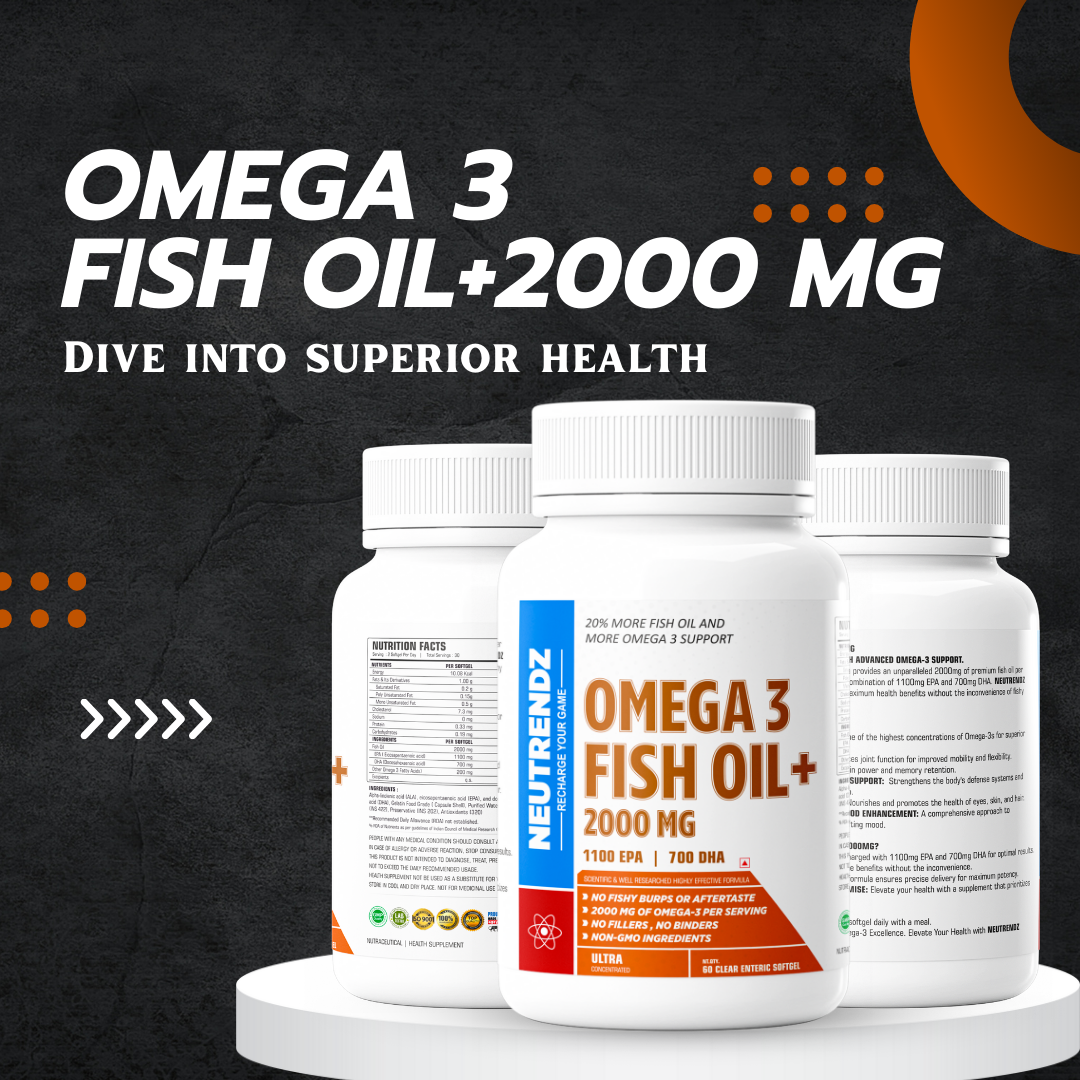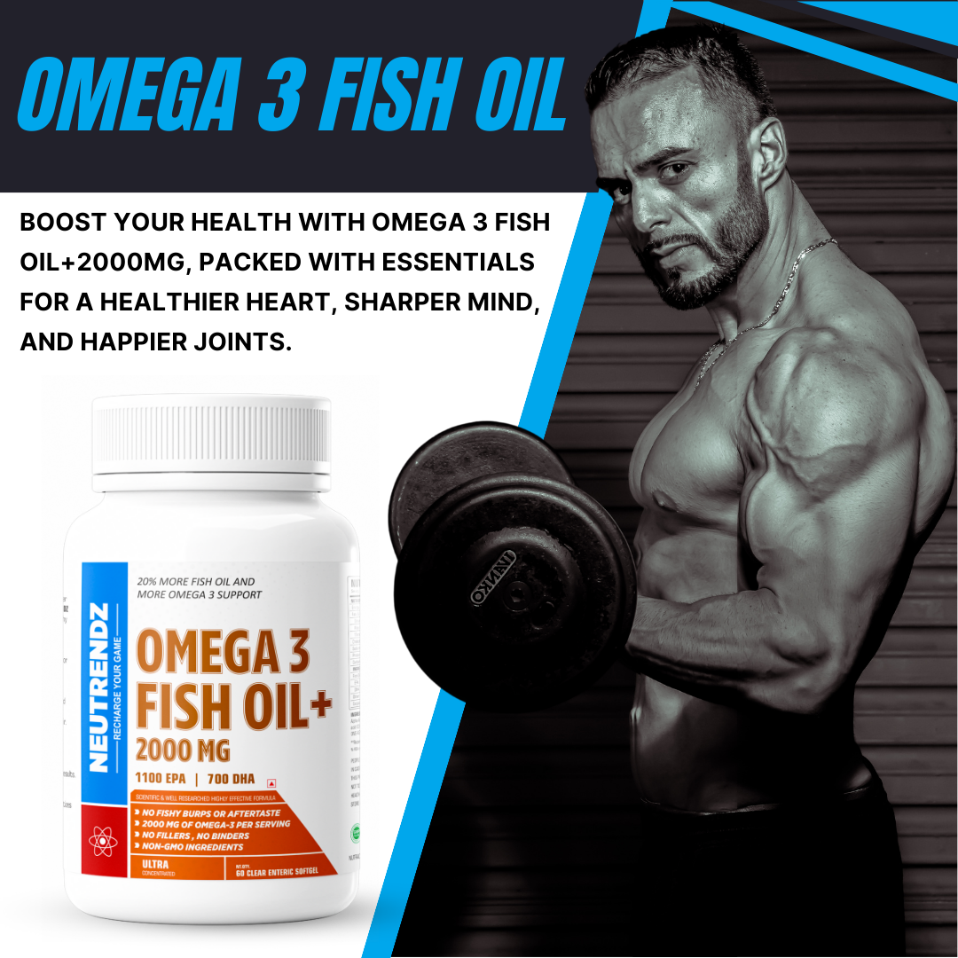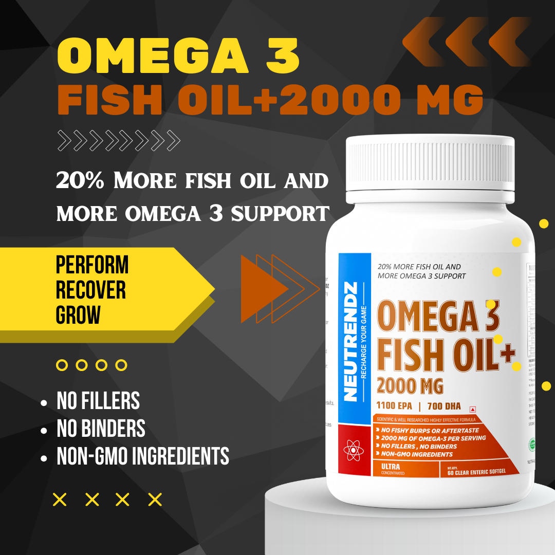 NEUTRENDZ FISH OIL+ 2000MG Ultra-Concentrated Omega-3 Supplement | 1100mg EPA & 700mg DHA | 60 Enteric Softgels | No Fishy Burps | Joint, Brain, Heart & Skin Health Support | Non-GMO