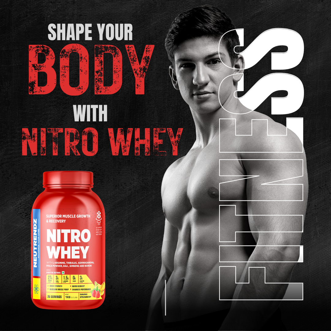NEUTRENDZ NITRO WHEY | 27g Protein | 3g Creatine | 1.5g L-Arginine | BCAAs, Ashwagandha, DAA, Maca, Digestive Enzymes | Muscle Growth, Recovery & Strength Formula | Zero Sugar | 40g Scoop | Pro Competition Series