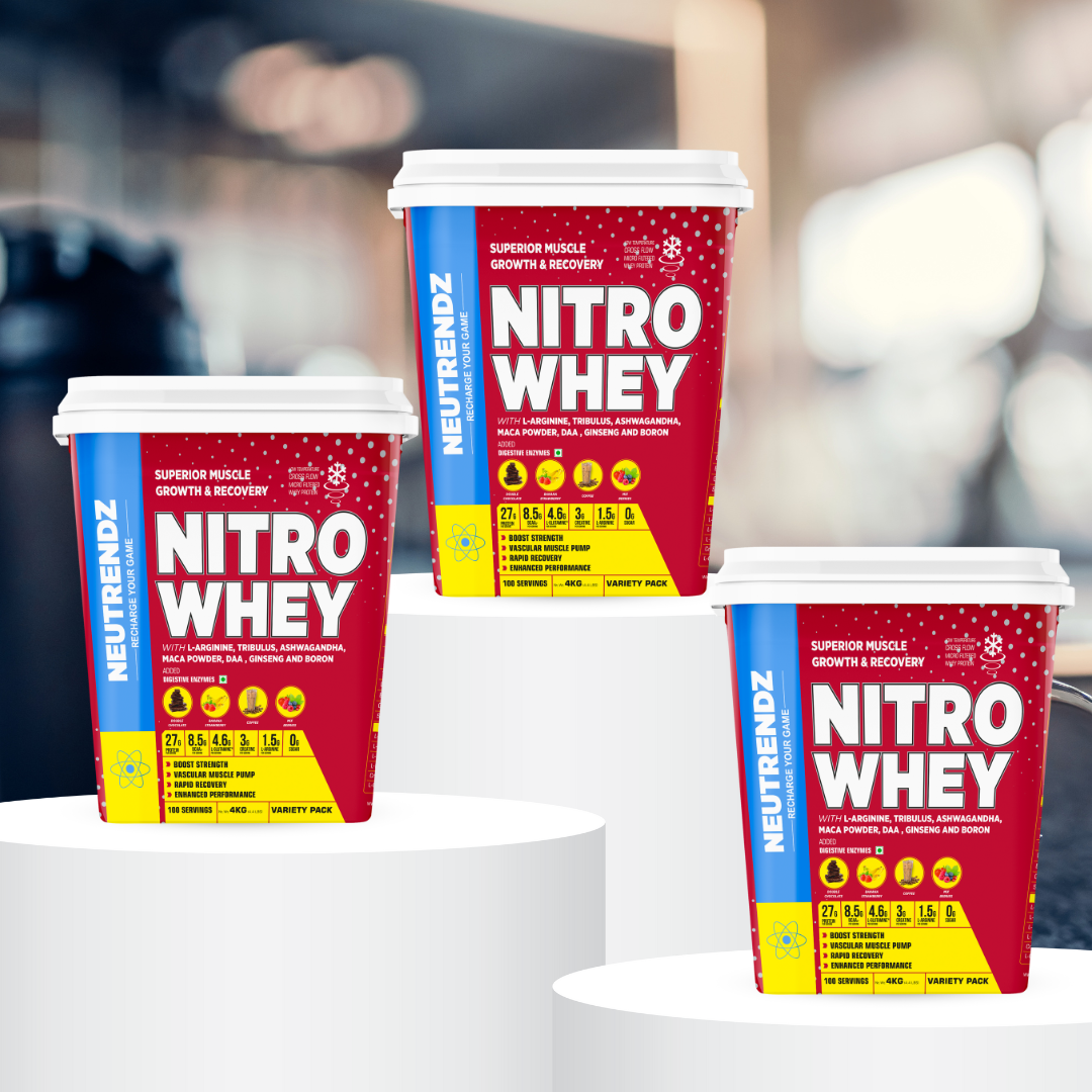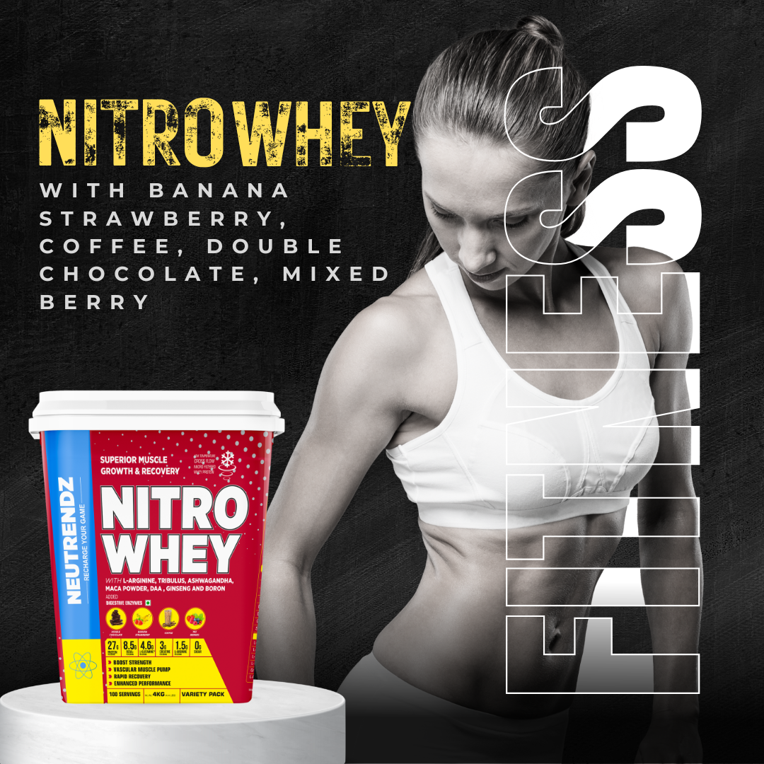 NEUTRENDZ NITRO WHEY ( BANANA STRAWBERRY 4 IN 1 VARIETY PACK 4KG )