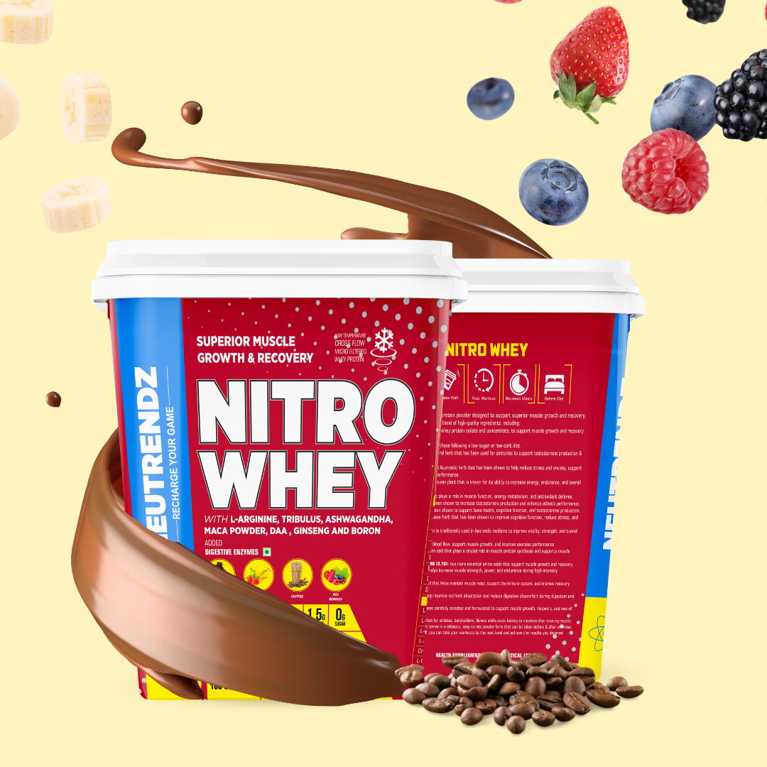 NEUTRENDZ NITRO WHEY | 27g Protein | 3g Creatine | 1.5g L-Arginine | BCAAs, Ashwagandha, DAA, Maca, Digestive Enzymes | Muscle Growth, Recovery & Strength Formula | Zero Sugar | 40g Scoop | Pro Competition Series