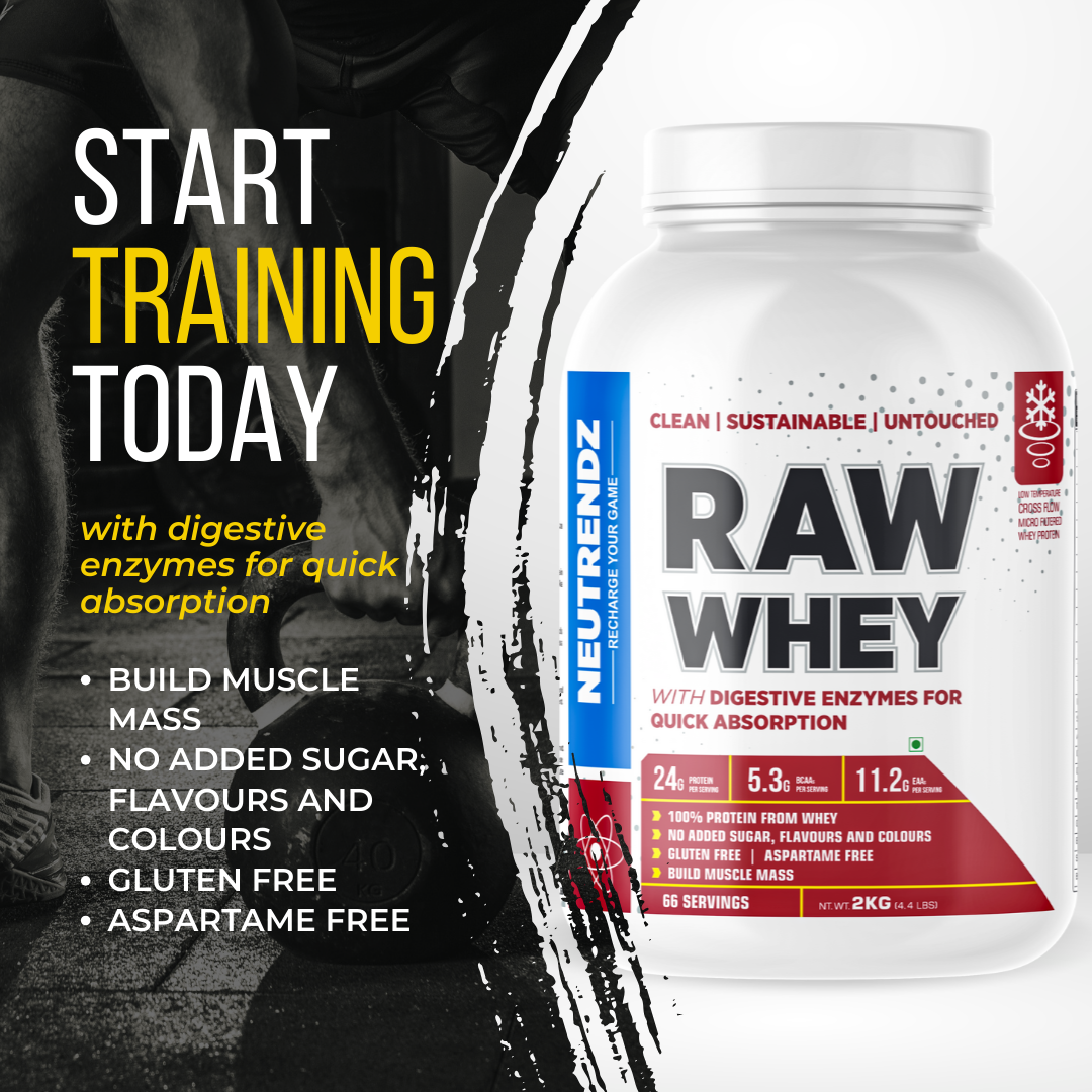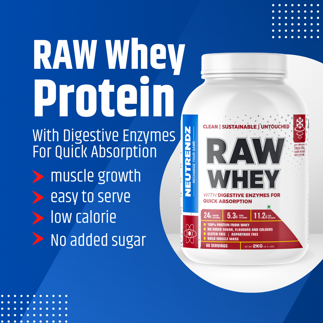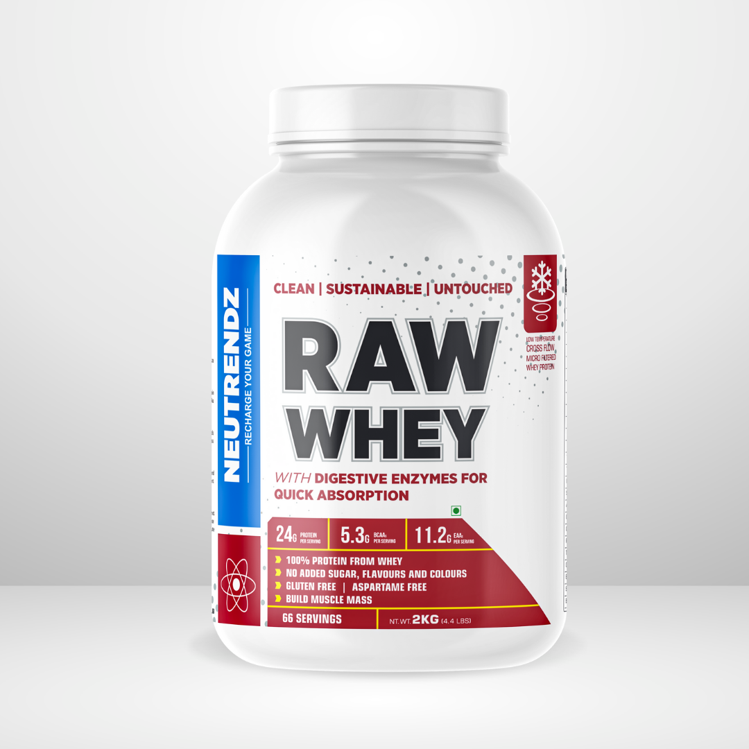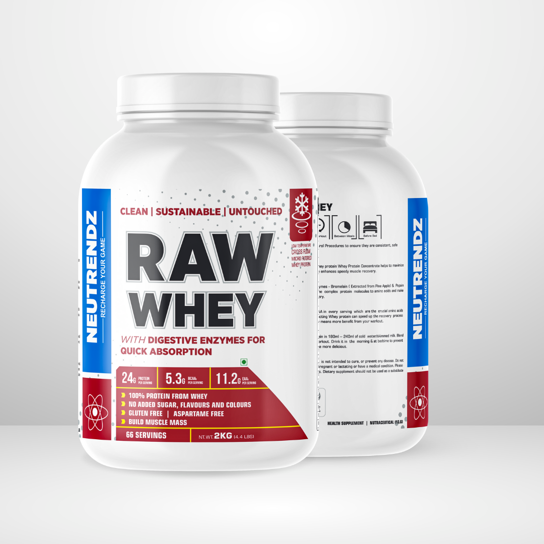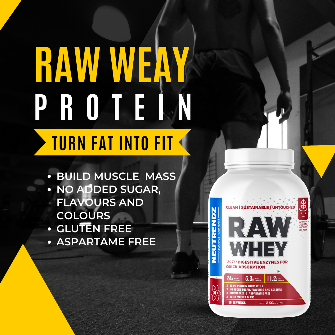 - WHEY: Raw Whey is 100% whey protein concentrate to achieve lean muscle and muscle gain and is ideal for weight loss programs. It helps in new muscle synthesis, speeds up recovery, and reduces muscle soreness.